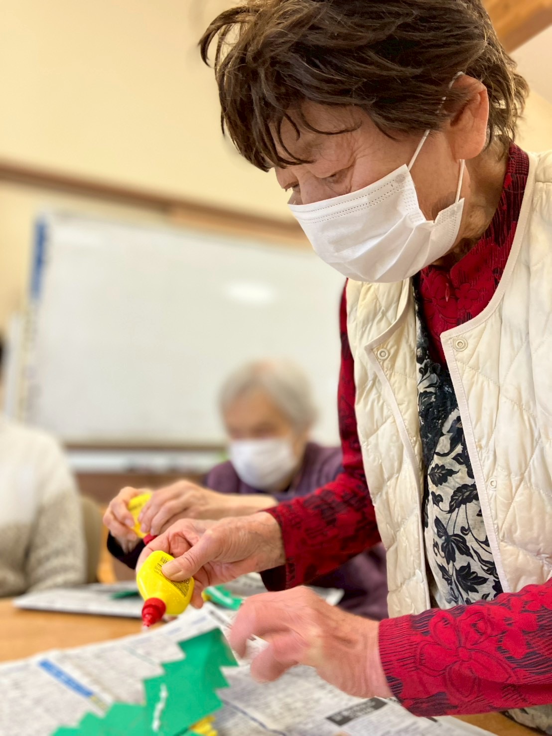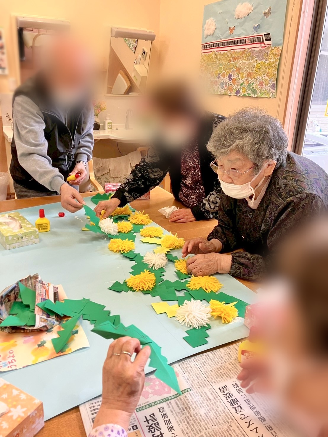 ご利用者様が心を込めて作る花紙のアーチ。