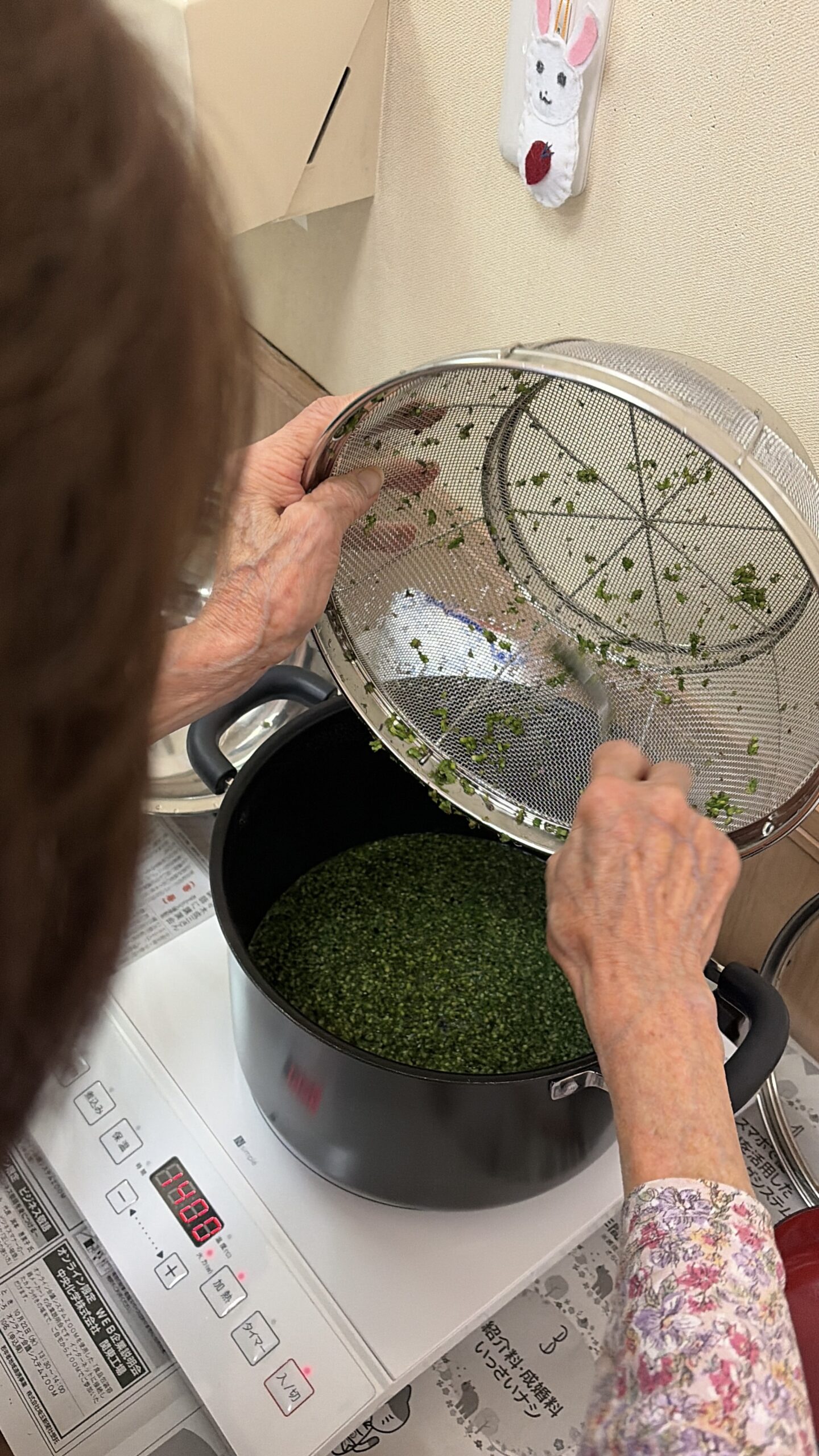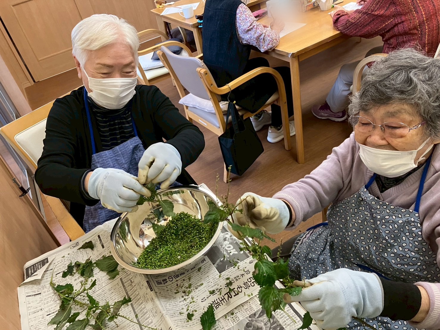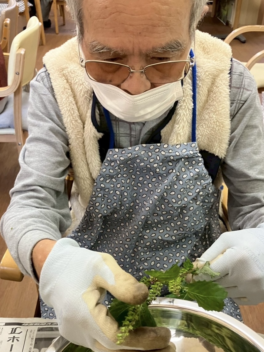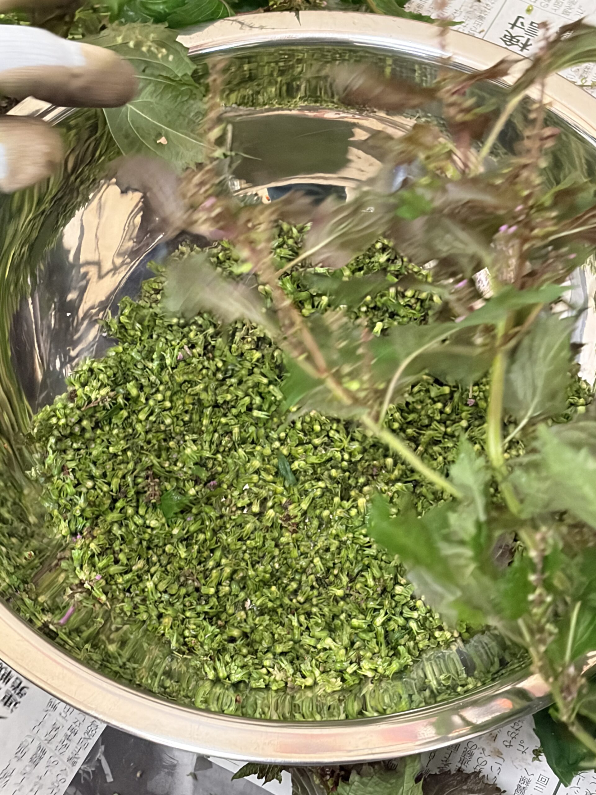 たくさんの紫蘇を収穫してフロアへ運ぶと、