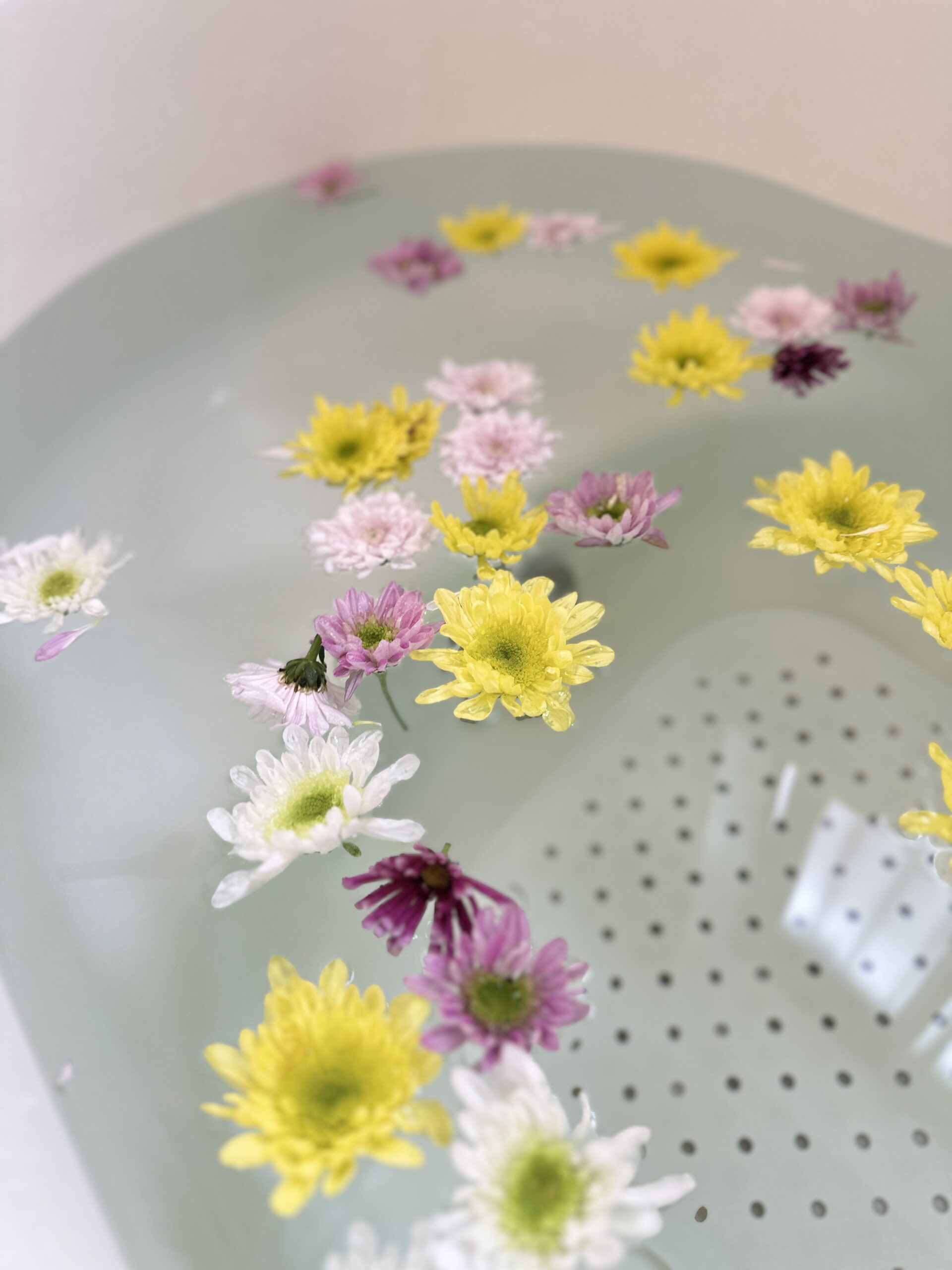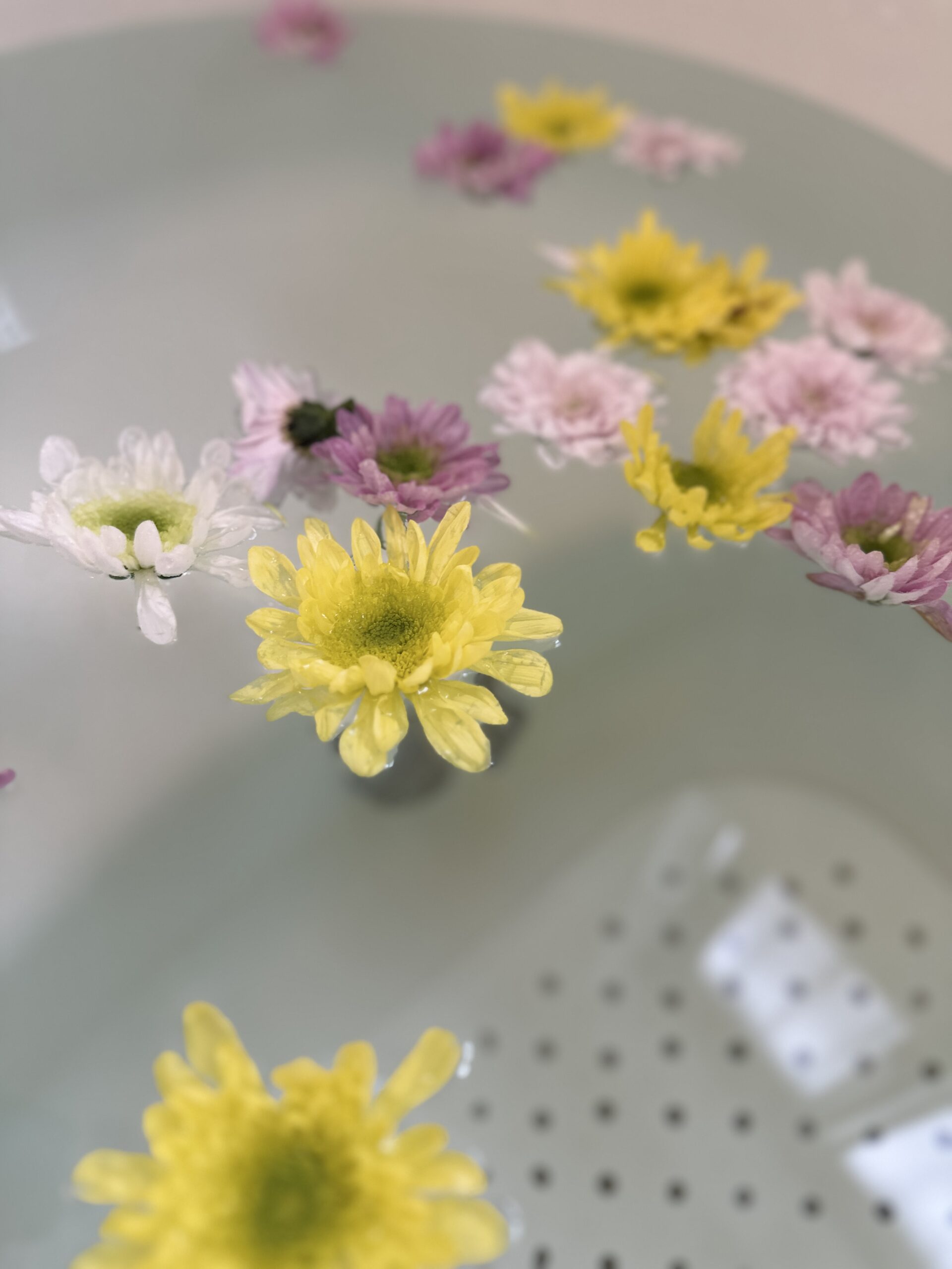 摘んだ菊をお湯に浮かべてみると、