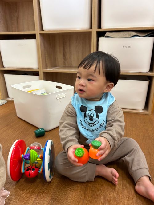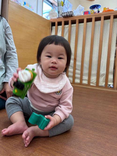 進級児のお友達も、泣き声に少し戸惑いを見せながらも、泣いているお友達の頭をなでたり、おもちゃを渡したり…おもいやりのある姿が見られ、ほっこりする場面も😊