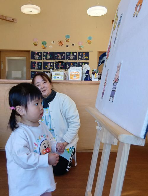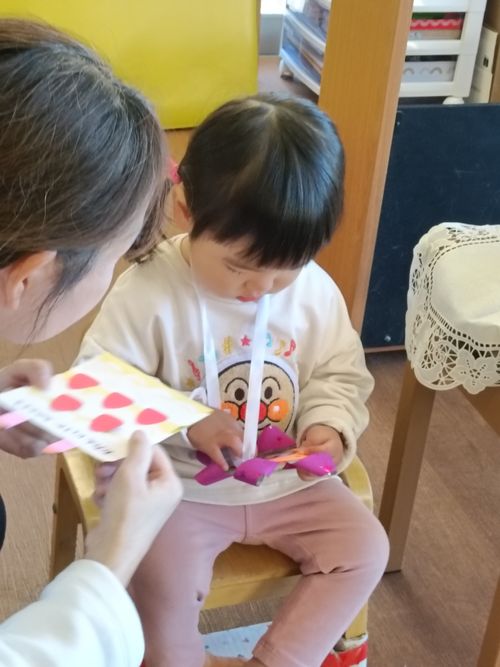 「お名前は?何歳になりましたか?」と保育者に聞かれると…緊張気味が少しほぐれ、指で「2」と教えてくれました😊