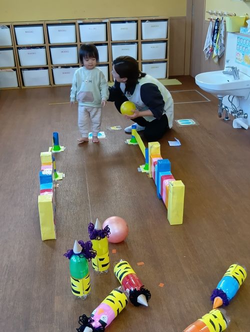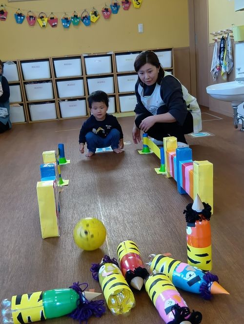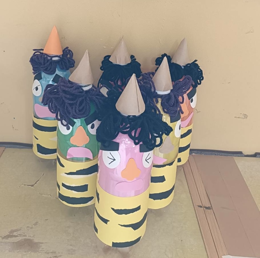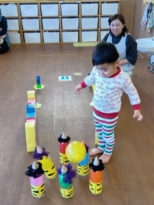 ボーリングのピンは、おこりんぼオニ、泣き虫オニなどなど。